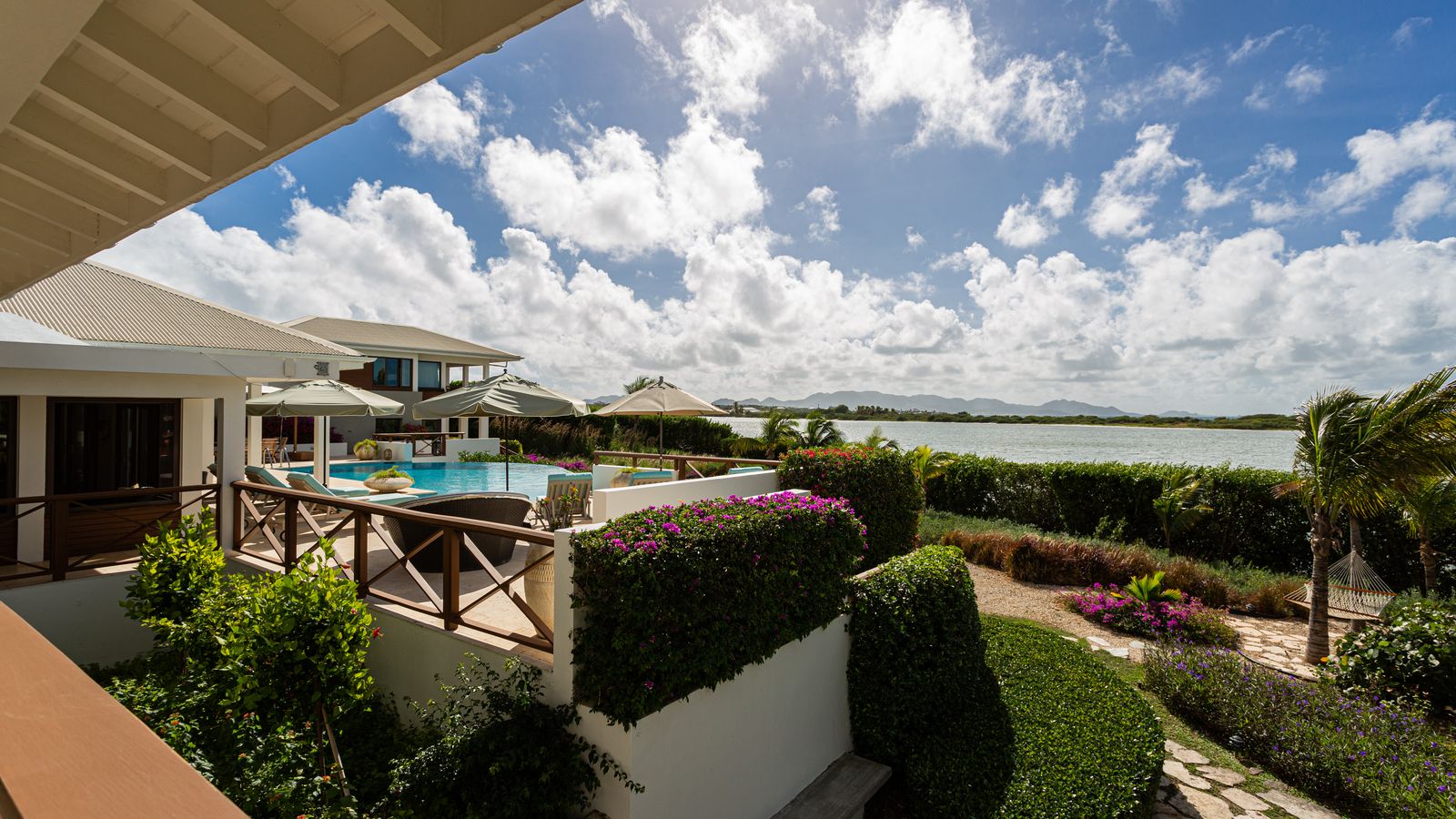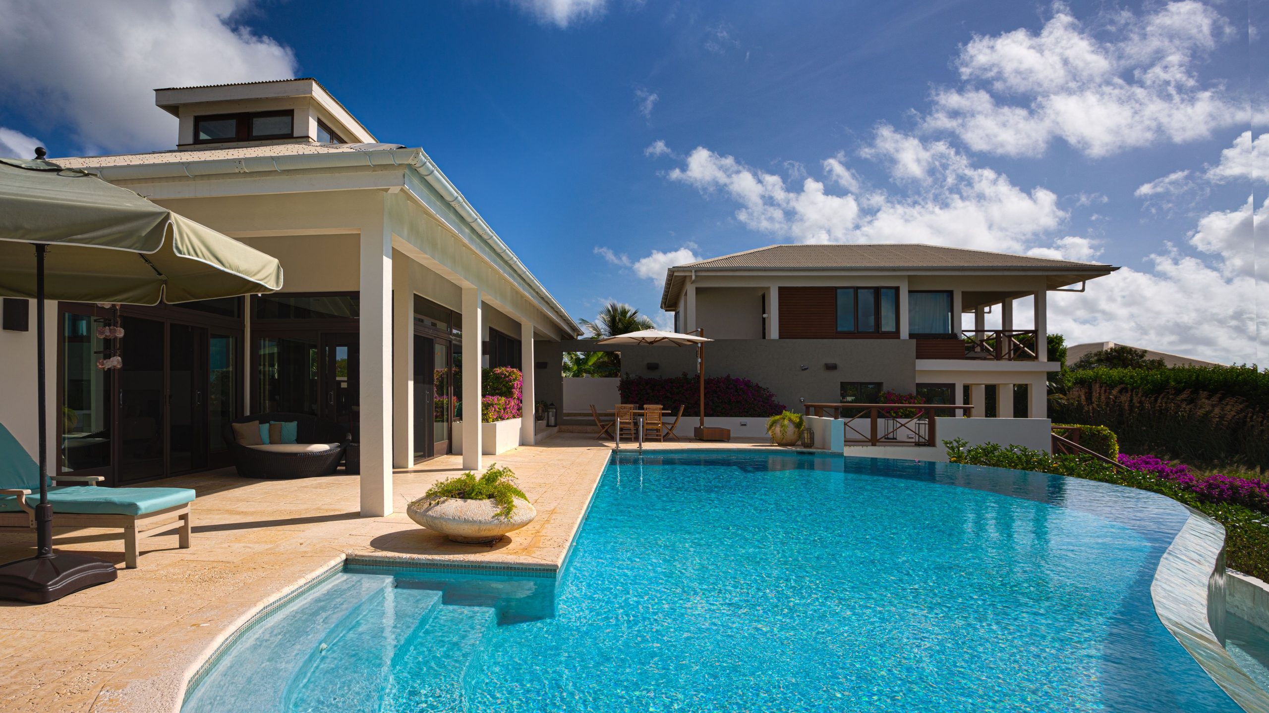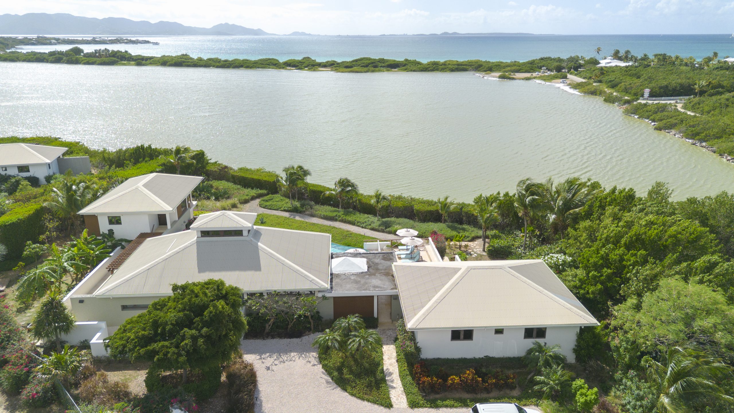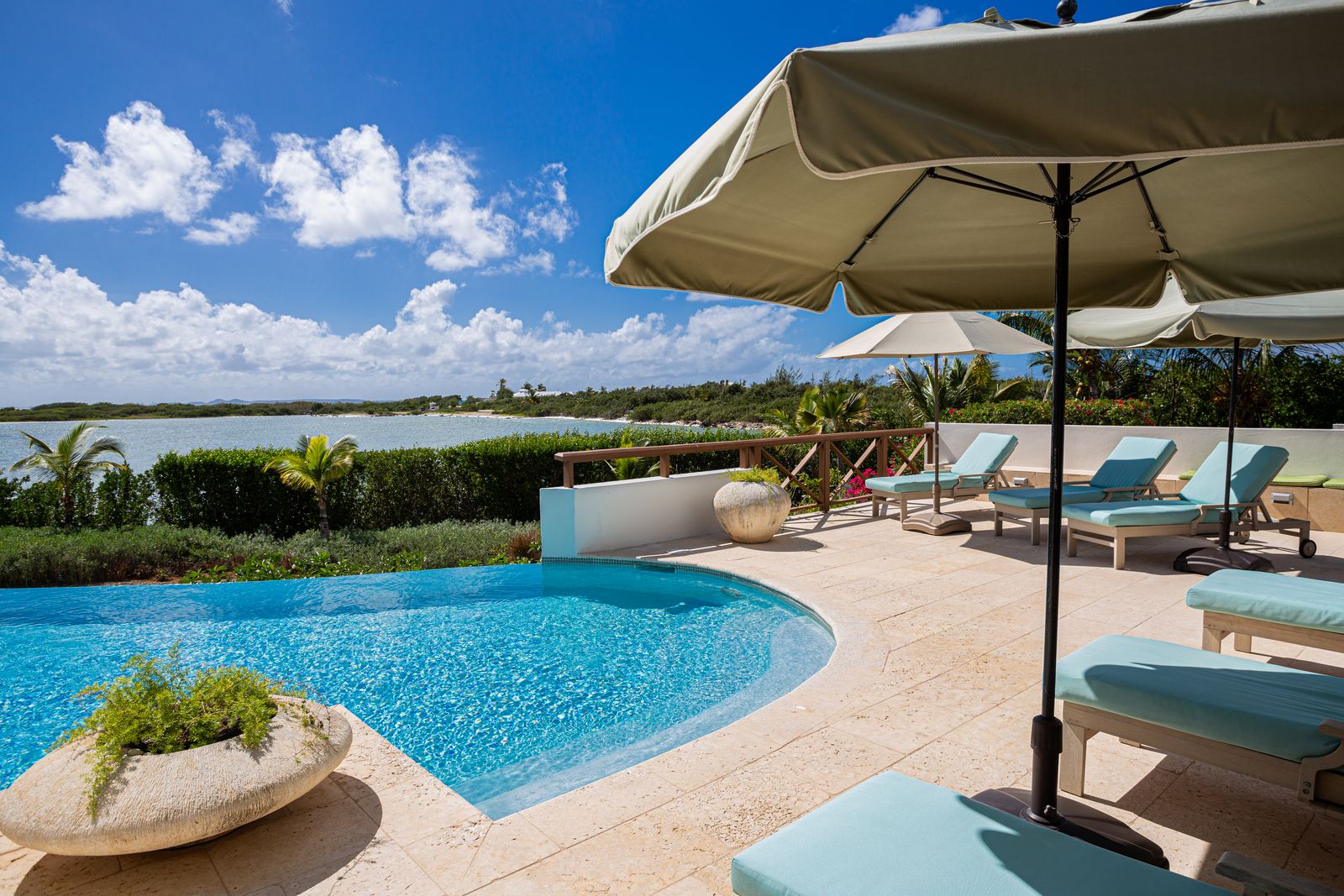 Expansive glass openings and generous terraces, provides multiple spaces for lounging, entertaining, or dining beneath the stars. A sweeping pool deck with a large infinity pool, create a seamless indoor/outdoor experience. From sunrise to sunset, enjoy panoramic views across Rendezvous Bay, the Caribbean Sea, and the mountains of St. Martin.