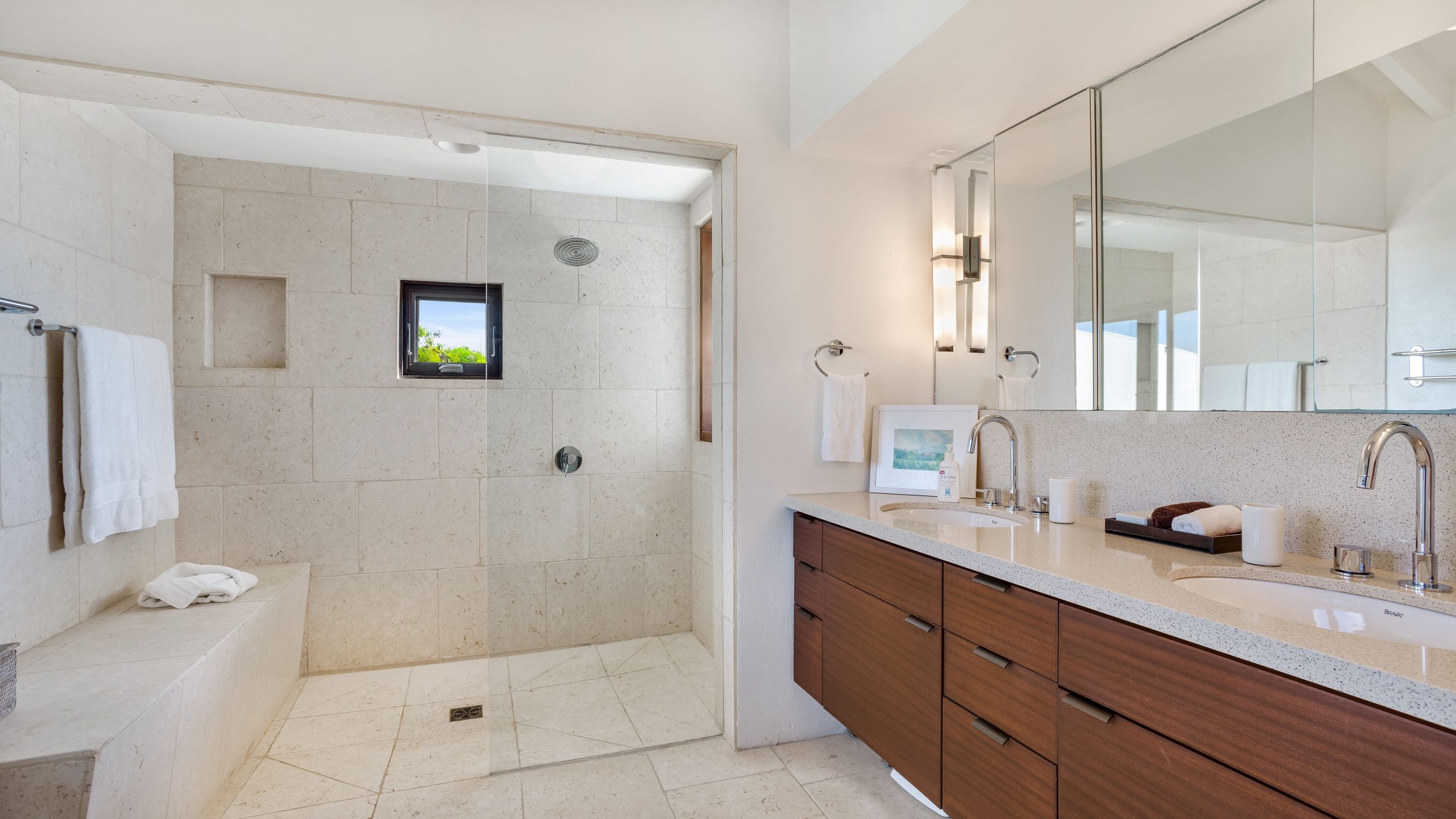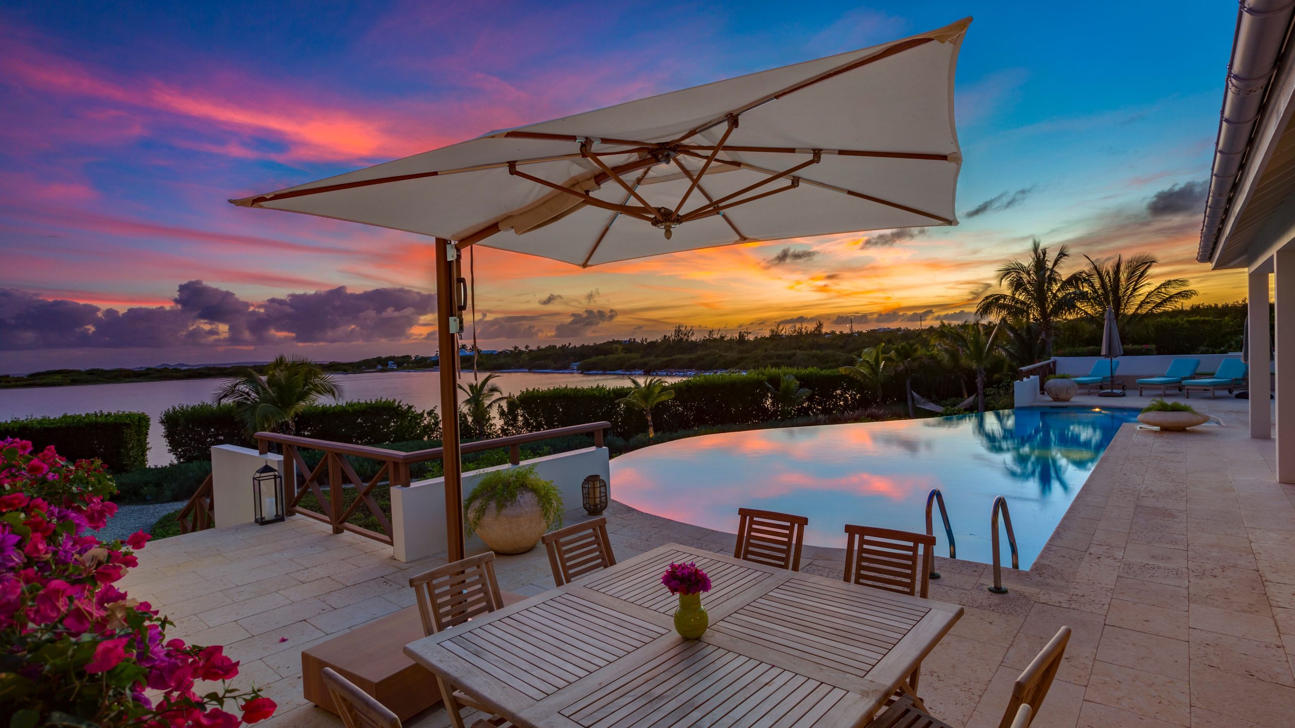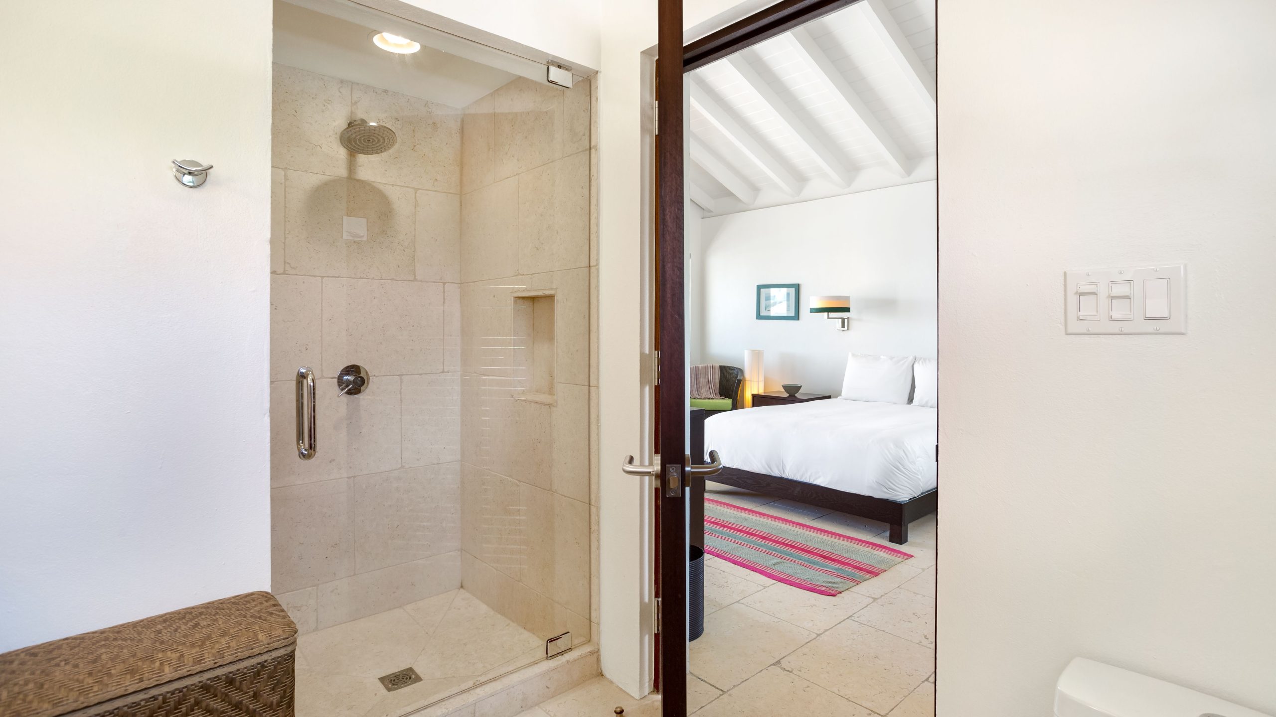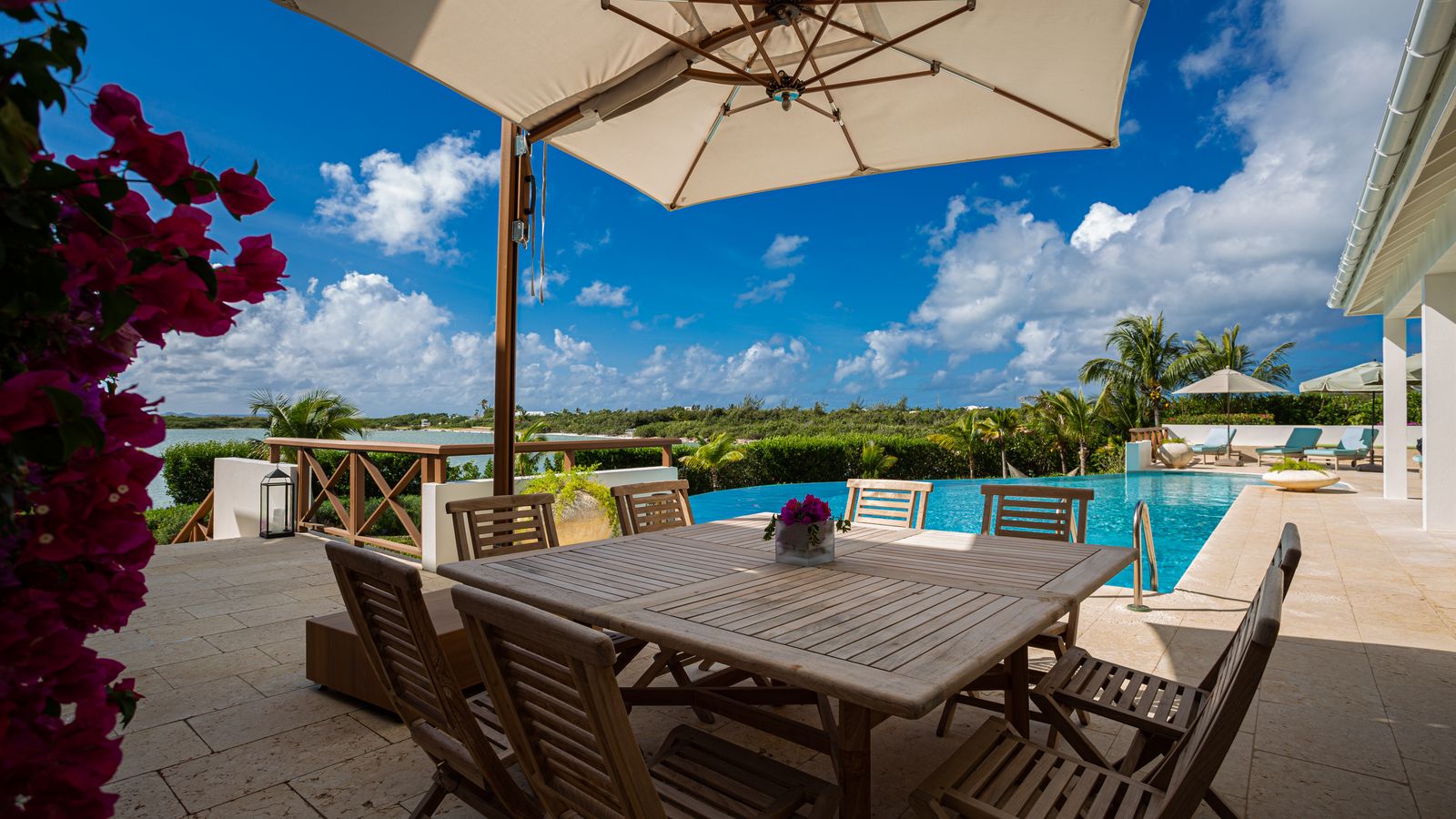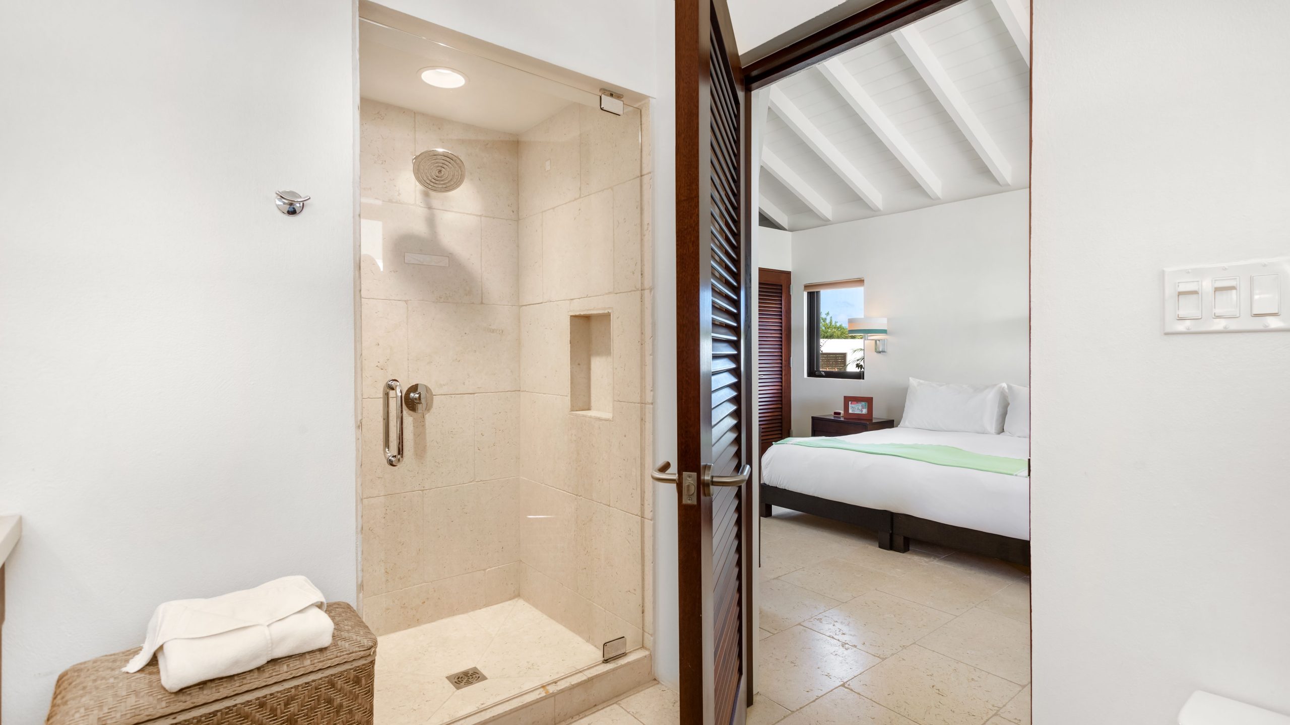 Expansive glass openings and generous terraces, provides multiple spaces for lounging, entertaining, or dining beneath the stars. A sweeping pool deck with a large infinity pool, create a seamless indoor/outdoor experience. From sunrise to sunset, enjoy panoramic views across Rendezvous Bay, the Caribbean Sea, and the mountains of St. Martin.