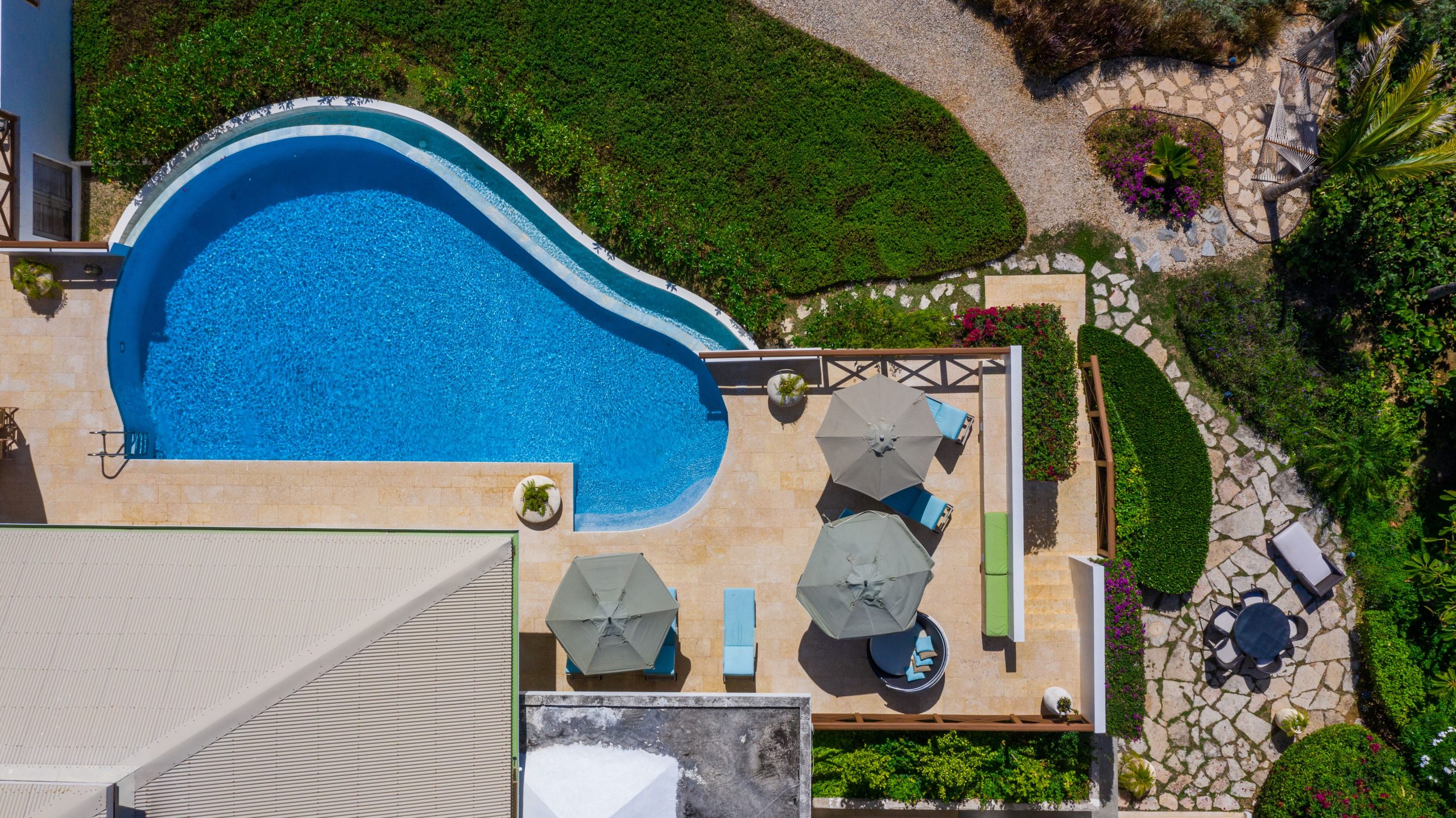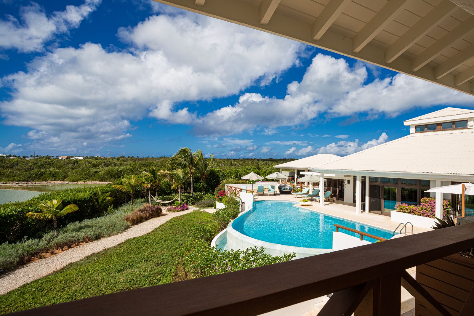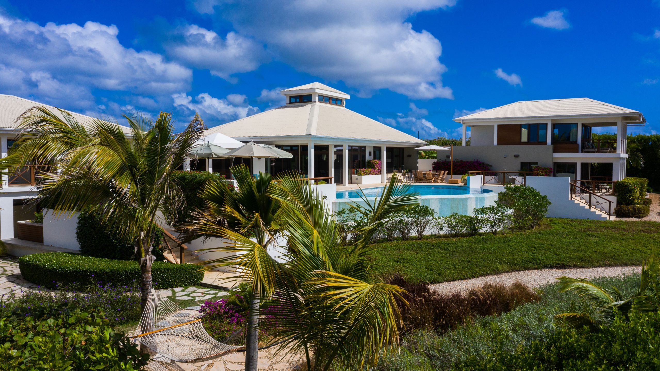 Bedrooms: The villa features four spacious bedrooms, four and a half baths, all offering privacy and comfort.